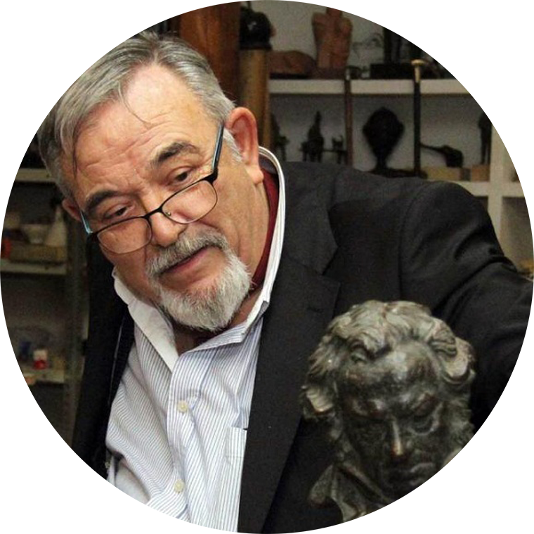 Escultor nacido en Oviedo en 1943. De estilo escultórico evolutivo, parejo al momento que le tocaba vivir, los materiales que emplea suelen ser maderas, piedras, metales y resinas sobre el que demuestra una gran maestría en su modelado y talla. Fue el creador de la conocida estauilla que reciben los galardonados con los Premios Goya de la Academis de Cine Española y ha estado vinculado a la Bienal desde sus inicios, siendo el creador de las medallas de buena parte de las ediciones del certamen.
